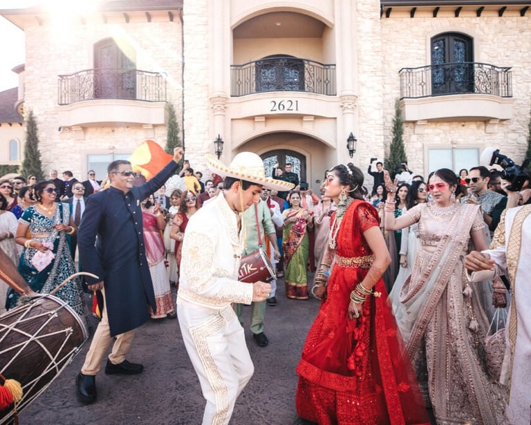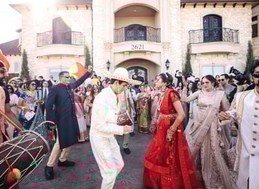 Our Wedding day begins with a vibrant Baraat, a pre-ceremony celebration filled with music and energy, honoring our Indian traditions.